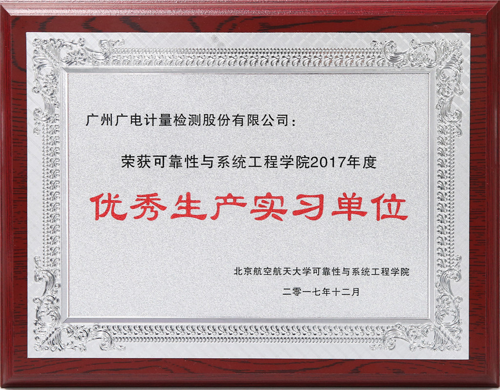 北京航天大學可靠性與系統工程學院2017年度優秀生產實習單位