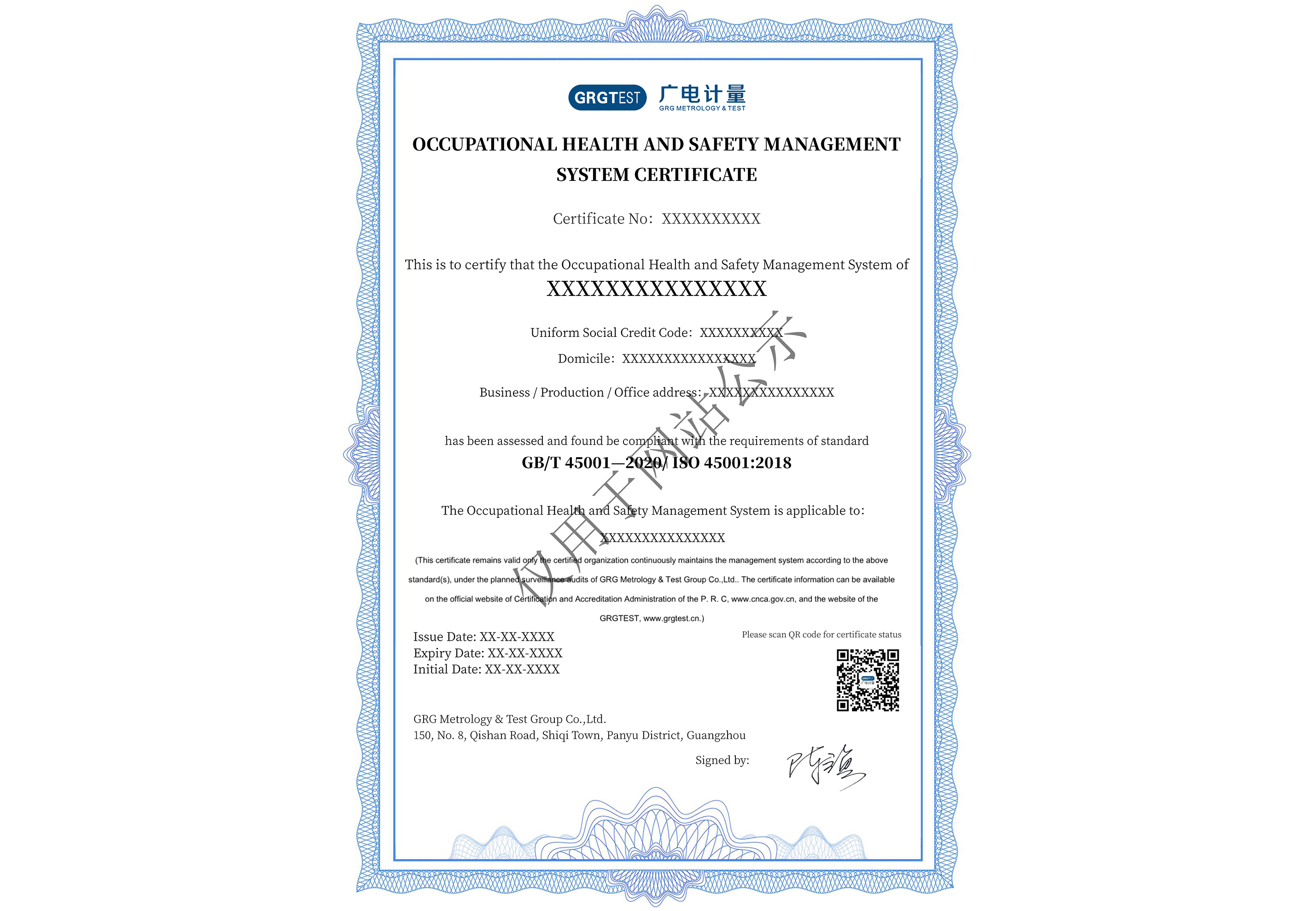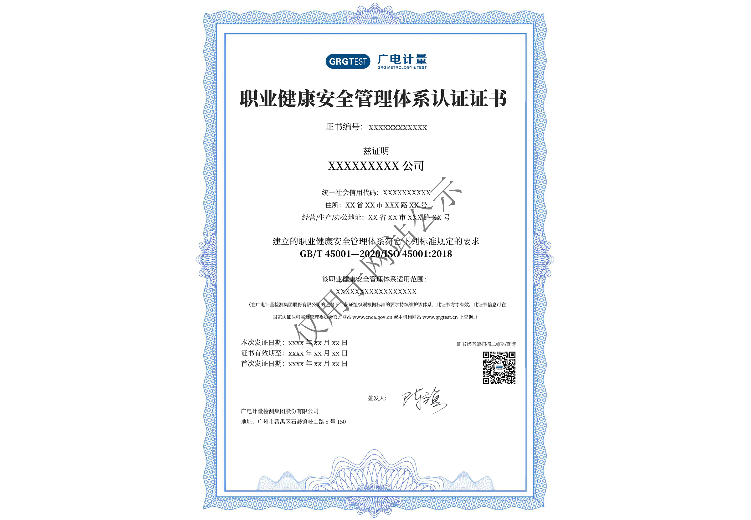 職業(yè)健康安全管理體系證書(shū) 模板(英)