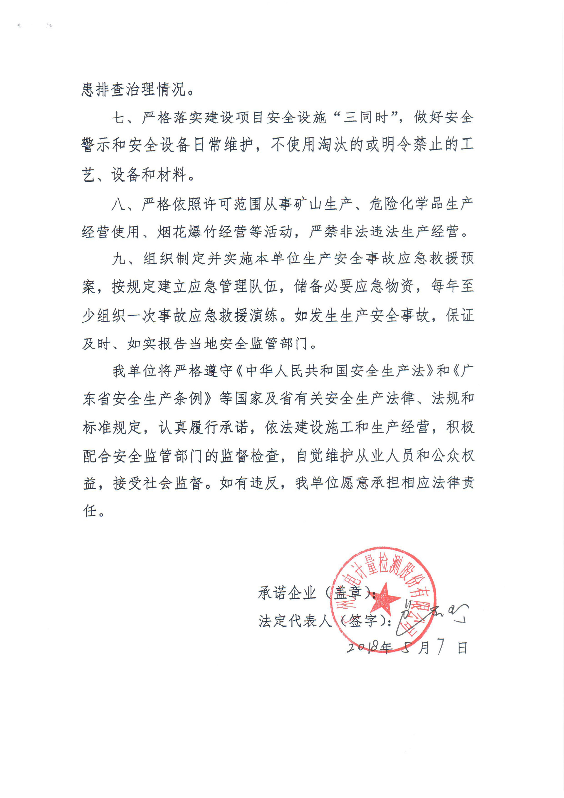 廣電計量安全生產主體責任承諾書(2018年)