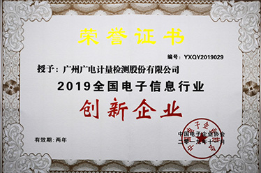 喜訊!廣電計量榮獲“2019年全國電子信息行業創新企業”稱號