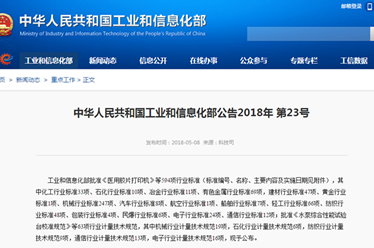 5月8日,國家工業(yè)和信息化部發(fā)布2018年第23號公告,批準了594項行業(yè)標準、63項行業(yè)計量技術規(guī)范,定于今年7月1日正式實施。由廣電計量技術研究院專家團隊編寫的兩項...