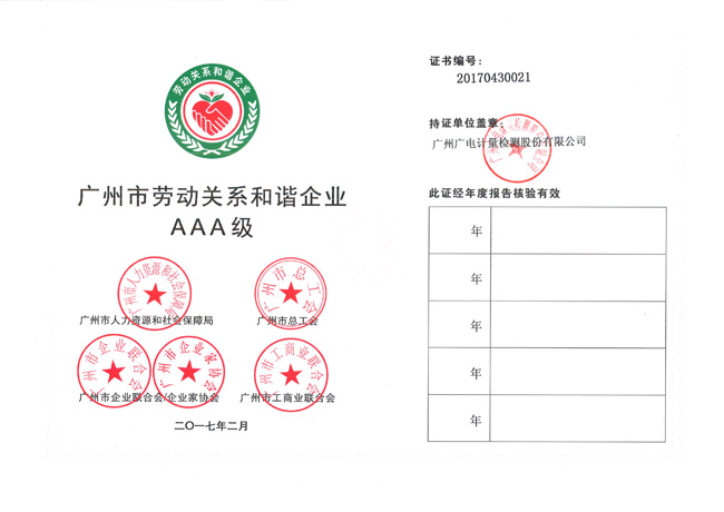 廣電計量獲“廣州市勞動關系和諧企業AAA級”稱號