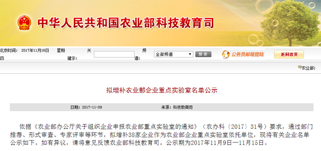 近日,農(nóng)業(yè)部公示了“十三五”規(guī)劃期最新擬增補(bǔ)的38家農(nóng)業(yè)部企業(yè)重點(diǎn)實(shí)驗(yàn)室依托單位名單,廣電計(jì)量全資子公司——廣電計(jì)量檢測(cè)(湖南)有限公司作為第三方計(jì)量檢測(cè)機(jī)構(gòu)成功入選。