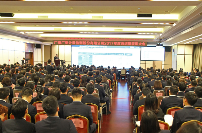 凝心聚力創(chuàng)佳績,砥礪奮進(jìn)繪新篇。1月26日,廣電計量2017年度總結(jié)暨表彰大會成功召開,廣州無線電集團(tuán)公司領(lǐng)導(dǎo)及各部門領(lǐng)導(dǎo)、廣電計量經(jīng)營管理團(tuán)隊、各子公司、各中心(部門)骨干員工代表齊聚廣州,共襄年度盛會。會議回顧年度大事,系統(tǒng)總結(jié)2017年取得的經(jīng)營管理成果,表彰先進(jìn)團(tuán)隊及個人,并針對2018年工作進(jìn)行部署。廣州無線電集團(tuán)副董事長、總裁、黨委副書記、廣電計量董事長黃躍珍發(fā)表重要講話,廣電計量總經(jīng)理、黨委副書記黃敦鵬代表公司作2017年度經(jīng)營工作總結(jié)報告,會議由廣電計量副總經(jīng)理曾昕主持。此外,大會特邀十余位計量檢測領(lǐng)域?qū)<矣H臨現(xiàn)場,共享豐收喜悅。