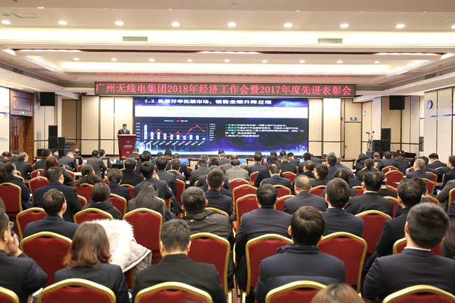 廣州無線電集團經(jīng)營班子全體成員、監(jiān)事會成員、中層以上管理人員、相關(guān)部門管理人員及2017年度先進集體和個人代表等近200人參會。