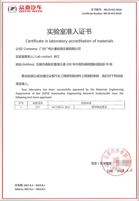廣電計量新獲沃爾沃、眾泰汽車第三方實驗室能力認可