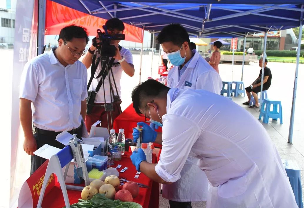 7月20日, “2018年全國食品安全宣傳周暨桂林創(chuàng)食安城大宣傳活動儀式”在桂林市中心廣場舉行。桂林市副市長、市食安委副主任蘭燕,市人大常委會副主任石春蓮,市政協(xié)副主席鄭毅等領(lǐng)導(dǎo)出席活動。廣電計(jì)量現(xiàn)場免費(fèi)提供蔬菜、水果、肉類等食品農(nóng)產(chǎn)品的農(nóng)殘、獸殘快檢服務(wù),科普食品原料安全選購常識,吸引眾多市民及媒體記者駐足交流。