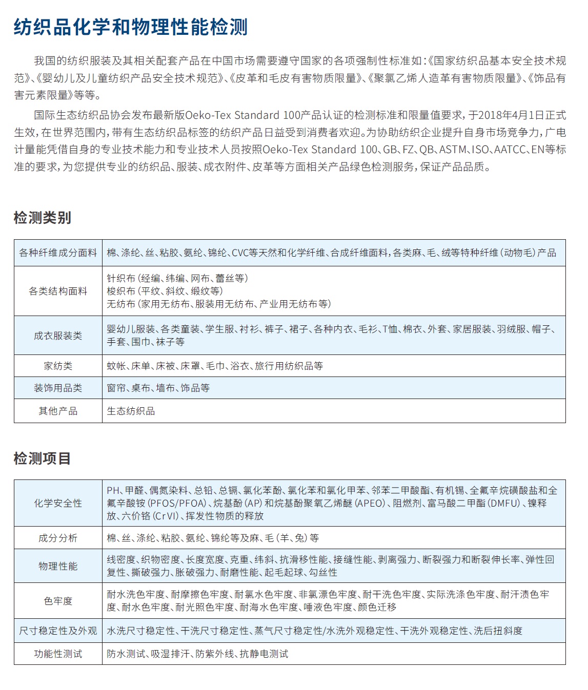 廣電計量紡織、服裝產品及相關配套產品一站式檢測服務方案