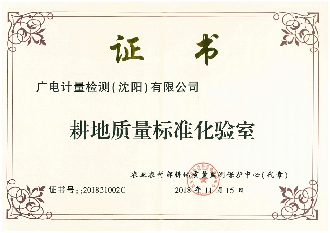 資訊中心公司新聞助力耕地質量提升|沈陽廣電計量被認定為“2018年耕地質量標準化驗室”