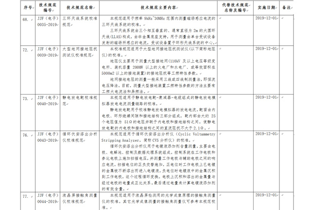 日前,國家工業(yè)和信息部發(fā)布公告,批準了311項行業(yè)標準、1項汽車行業(yè)標準修改單、88項行業(yè)計量技術(shù)規(guī)范,并于2019年12月1日正式實施。其中,由廣電計量技術(shù)研究院技術(shù)專家團隊主導(dǎo)編寫的《三環(huán)天線系統(tǒng)校準規(guī)范》、《大型地網(wǎng)接地阻抗測試儀校準規(guī)范》、《靜電放電靶校準規(guī)范》、《循環(huán)伏安溶出分析儀校準規(guī)范》、《液晶屏接觸角測量儀校準規(guī)范》等5項電子行業(yè)校準規(guī)范,以及參與編寫的《電磁耦合鉗校準規(guī)范》頒布實施。