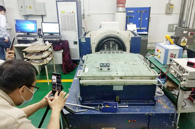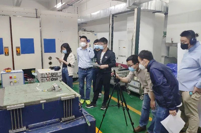 為保證遠(yuǎn)程目擊試驗(yàn)真實(shí)、可靠,審查組工程代表首先向申請人和廣電計(jì)量技術(shù)負(fù)責(zé)人宣貫了審查組的要求,明確了遠(yuǎn)程審查的開展前提和實(shí)施原則,并由委任制造檢查代表在廣州試驗(yàn)現(xiàn)場完成了試驗(yàn)前制造檢查。本次遠(yuǎn)程目擊試驗(yàn)采取固定鏡頭和移動鏡頭相配合的方式,保證試驗(yàn)現(xiàn)場實(shí)況的360°全覆蓋。試驗(yàn)條件準(zhǔn)備就緒后,審查組、申請人和廣電計(jì)量技術(shù)人員按照試驗(yàn)大綱,共同開展了試驗(yàn)?zāi)繐魴z查,確認(rèn)測試數(shù)據(jù);并由審查組根據(jù)目擊檢查情況,向申請人反饋檢查結(jié)果,圓滿完成了檢查工作。