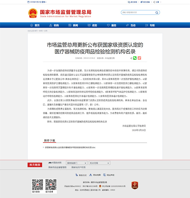 資訊中心公司新聞官宣!方廣檢測進入總局國家級醫療器械防疫用品檢驗檢測機構名錄