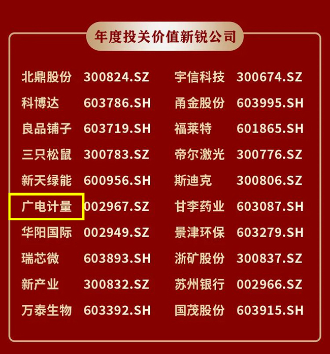 12月8日,由中國基金報聯合權威投關平臺機會寶共同舉辦的首屆中國上市公司投關價值經綸獎評選榜單揭曉。憑借公司治理、信息披露和投資者關系管理等工作方面的優異表現,廣電計量榮膺年度投關價值新銳公司