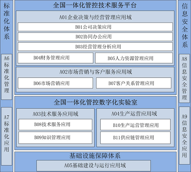 廣電計量結合公司戰略規劃、經營思路,以及對標世界一流管理提升行動的要求,圍繞市場營銷、客戶運營、銷售執行、技術服務與生產運營、采購供應、客戶服務等價值鏈活動,從企業管理創新模式、企業架構實施路徑、數字化技術實現等層面統籌規劃和持續優化,基于數字化、信息化的頂層設計構建了“1+1+3”的數字化藍圖框架。