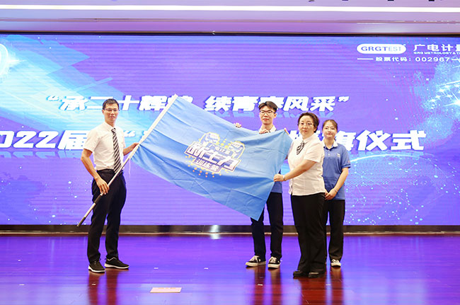 隨后,吳乃林上臺授旗,將 “新生力”訓練營營旗交給“新生力”訓練營營長、人力資源中心(組織部)總監(jiān)趙一靜及2022屆“新生力”代表手上,宣告廣電計量2022屆“新生力”訓練營正式開營!
