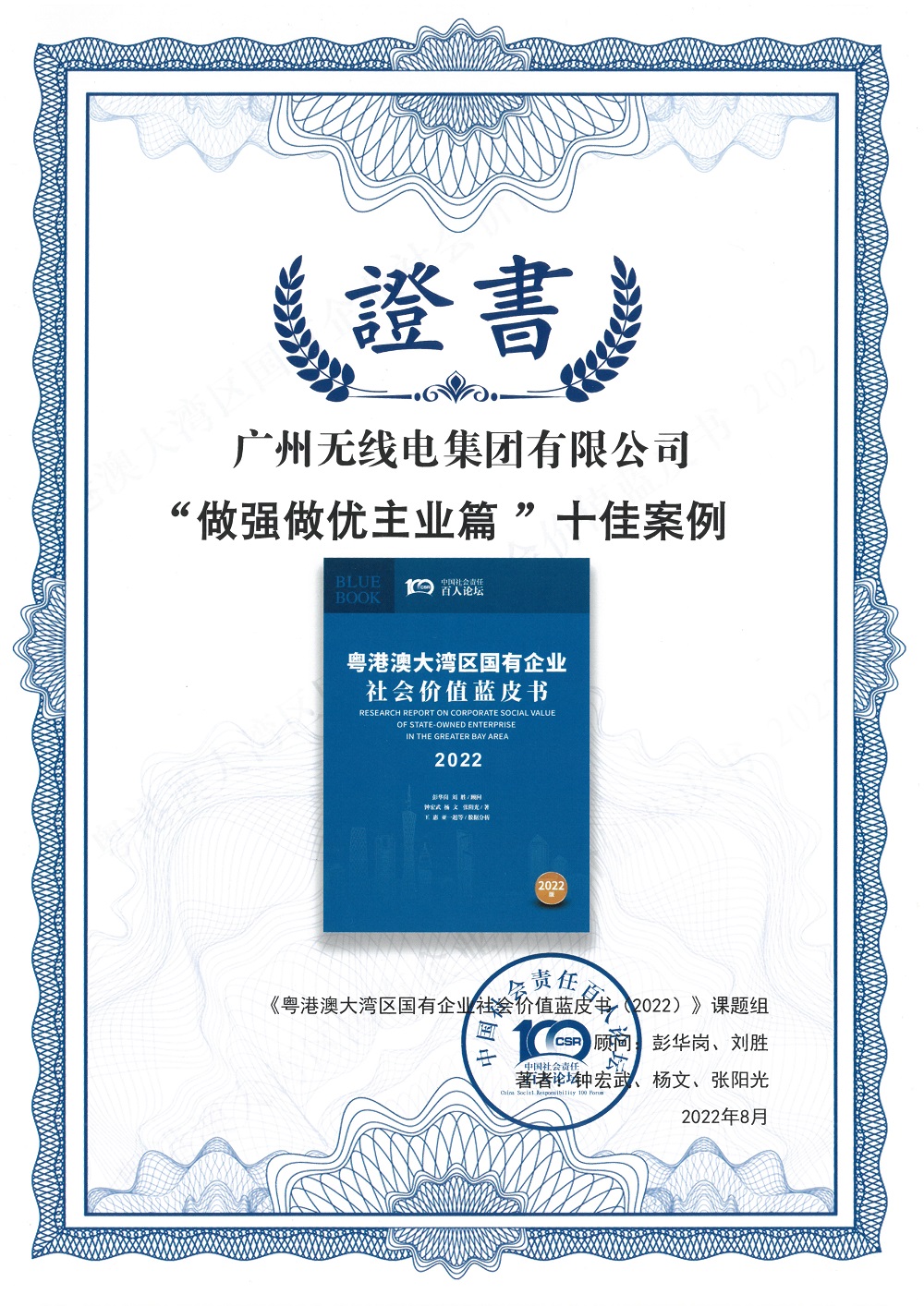 8月15日,“第二屆國企社會價值論壇”在廣州召開。論壇正式發布了《粵港澳大灣區國有企業社會價值藍皮書(2022)》及五大維度的十佳典型案例。廣州無線電集團成員企業廣電計量(SZ002967)案例《構建芯片測評認證體系,促進集成電路國產化進程》入選藍皮書“做強做優主業篇”十佳經典案例。集團總經理助理蘇秋霖代表公司出席論壇并領取了十佳案例證書。