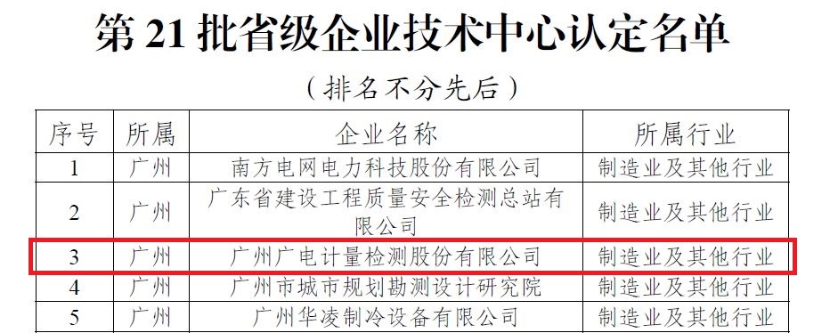 近日,廣東省工業(yè)和信息化廳公布第21批省級企業(yè)技術(shù)中心認(rèn)定名單,廣電計(jì)量順利通過省級企業(yè)技術(shù)中心認(rèn)定,是本批次僅有的4家通過認(rèn)定的檢驗(yàn)檢測類企業(yè)之一。