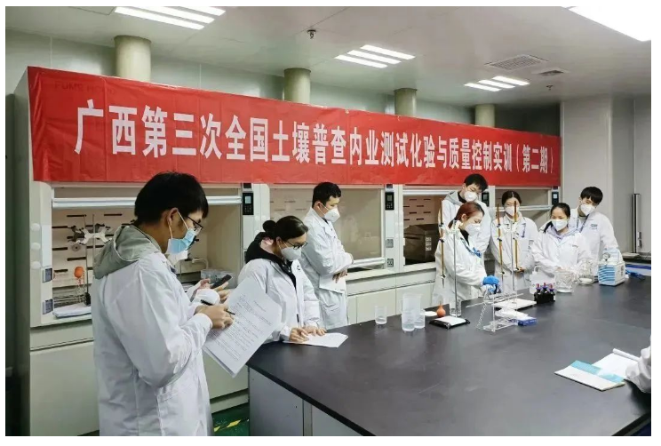 廣電計量南寧子公司生態環境檢測實驗室承接上林縣土壤三普試點樣品檢測分析服務。工作開展前實驗室認真制定《第三次全國土壤普查試點項目土壤樣品檢測內部質量控制和保證方案》,從人、機、料、法、環、測等相關環節開展全流程、全環節、全方位的質控管理。