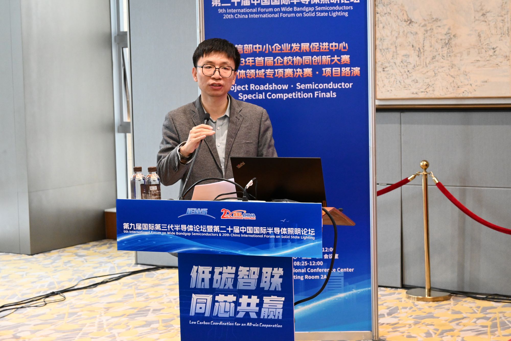 工信部中小企業發展促進中心人力資源研究所副所長陳琛,首屆企校協同創新大賽總顧問、清華大學國家服務外包人力資源研究院副院長毛居華,第三代半導體產業技術創新戰略聯盟副秘書長馮亞東出席決賽活動并致辭。