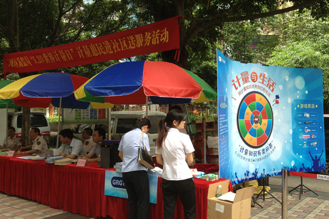 5月17日和20日,GRGT分別與廣州市黃埔區質量技術監督局和廣州市天河區質量技術監督局,聯合相關單位共同舉辦了主題為“計量與生活——5.20世界計量日計量惠民進社區送服務”的計量日宣傳活動。在兩地質監局的精心組織和大力支持下,GRGT策劃、組織、承辦了計量知識有獎知識問答宣傳活動,將計量知識融入趣味性飛鏢計分有獎問答游戲,向廣大市民科普民生計量知識。