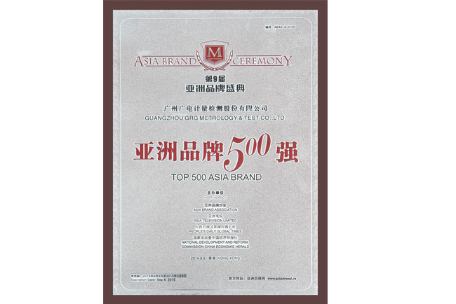 “亞洲品牌500強排行榜”是由 (ABAS)亞洲品牌測評體系專家系統委員會依據《(ABAS)亞洲品牌測評體系》集中對參評企業和品牌的市場表現、發展潛力、質量水平、效益水平等指標和系數做出公平、公正的評價而得出。GRGT獲“亞洲品牌500強”稱號,意味著公司在品牌建設與發展方面有了較大的提升。GRGT會以亞洲品牌榜首企業為學習榜樣,努力打造計量檢測品牌,樹立行業品牌旗幟。