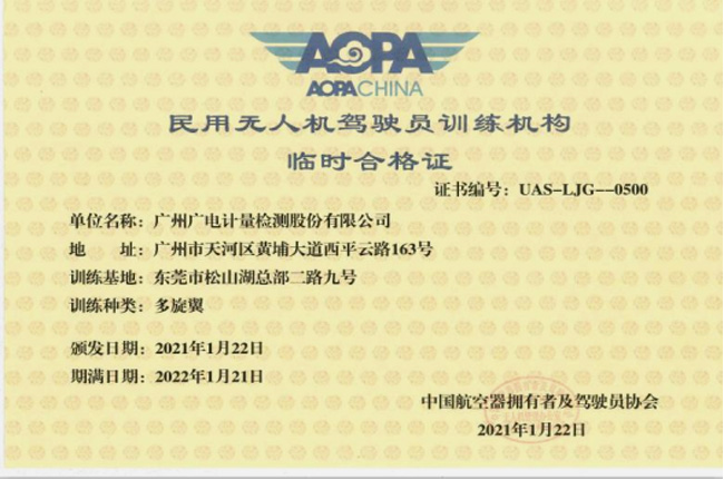 廣電計(jì)量咨詢(xún)培訓(xùn)事業(yè)部無(wú)人機(jī)飛行學(xué)院(以下簡(jiǎn)稱(chēng)學(xué)院)隸屬于廣州廣電計(jì)量檢測(cè)股份有限公司,是經(jīng)中國(guó)民用航空局授權(quán)、中國(guó)AOPA協(xié)會(huì)(中國(guó)航空器擁有者及駕駛員協(xié)會(huì))審定合格的專(zhuān)業(yè)無(wú)人機(jī)駕駛員/機(jī)長(zhǎng)訓(xùn)練機(jī)構(gòu)。學(xué)院通過(guò)培訓(xùn)無(wú)人機(jī)技術(shù)、無(wú)人機(jī)行業(yè)應(yīng)用、無(wú)人機(jī)操控等專(zhuān)業(yè)知識(shí),協(xié)助學(xué)員通過(guò)民航無(wú)人機(jī)飛行考試,取得民航電子執(zhí)照,并引導(dǎo)學(xué)員成為無(wú)人機(jī)應(yīng)用行業(yè)一流應(yīng)用專(zhuān)才!
