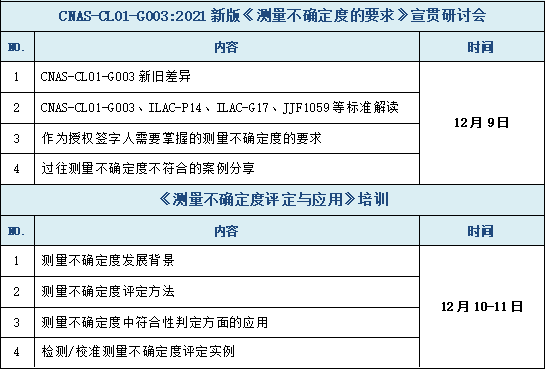 3、僅參加12月9日研討會的人員,頒發《CNAS-CL01-G003:2021測量不確定度》培訓證書。