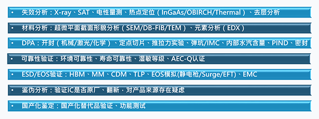 廣電計量集成電路失效分析實驗室,配備完善的EOS/ESD/RA等測試設備及完整的失效分析手法,擁有經(jīng)驗豐富的材料及電性能可靠性專家,可以針對IC進行全方位的失效分析及可靠性驗證方案的設計與執(zhí)行。