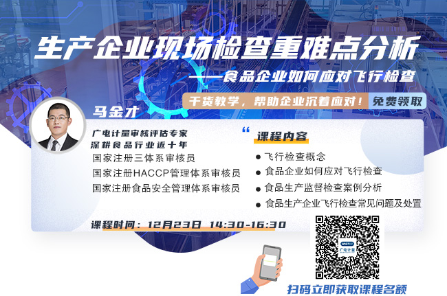 【活動主題】《生產(chǎn)企業(yè)現(xiàn)場檢查重難點分析——食品企業(yè)如何應(yīng)對飛行檢查》