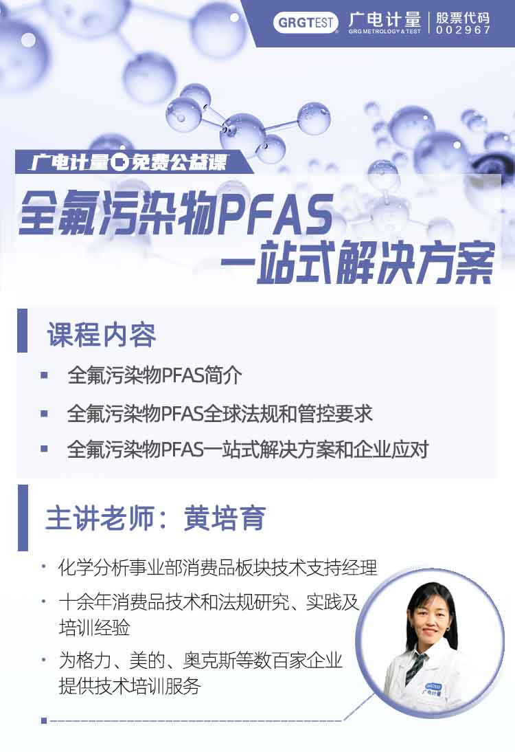 隨著各國(guó)PFAS管控要求增多,企業(yè)可能會(huì)面臨產(chǎn)品需要多次提交測(cè)試的困擾。廣電計(jì)量特開(kāi)展《PFAS全氟污染物一站式解決方案》公開(kāi)課,幫助企業(yè)全面解讀PFAS全球法規(guī)管控要求,協(xié)助企業(yè)盡早完成產(chǎn)品中全氟污染物的合規(guī)性檢測(cè),規(guī)避出口產(chǎn)品違規(guī)風(fēng)險(xiǎn)。