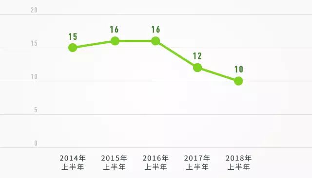 2015年以來,上半年廳局級干部落馬數量走勢圖