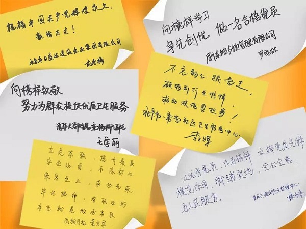 在節(jié)目現(xiàn)場(chǎng),有這樣一群中共預(yù)備黨員,他們有鐵路工作人員,有醫(yī)務(wù)工作者,有幼兒園教師,還有電力工人等。作為新黨員,他們被榜樣的事跡所感動(dòng),紛紛寫下了對(duì)榜樣的敬意。