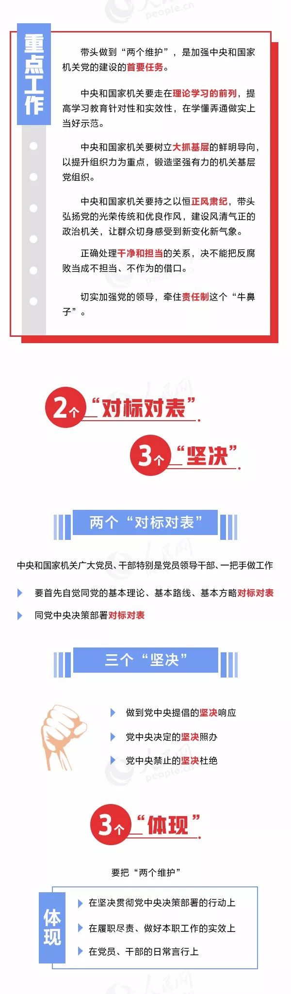通知要求,各級黨組織要自覺對標(biāo)習(xí)近平總書記重要指示精神,找差距、查問題、補短板,深化檢視剖析工作。中央和國家機關(guān)、省級機關(guān)和副省級城市機關(guān)要重點查找在做到“兩個維護”方面的差距,看是否做到黨中央提倡的堅決響應(yīng)、黨中央決定的堅決照辦、黨中央禁止的堅決杜絕;查找在加強理論學(xué)習(xí)方面的差距,看是否在真學(xué)真懂真信真用習(xí)近平新時代中國特色社會主義思想上下功夫;查找在夯實基層基礎(chǔ)方面的差距,看是否存在機關(guān)黨建“燈下黑”的問題;查找在正風(fēng)肅紀(jì)方面的差距,看是否堅決克服形式主義、官僚主義,是否堅持嚴(yán)字當(dāng)頭,加強對黨員、干部全方位的管理監(jiān)督,一體推進不敢腐、不能腐、不想腐;查找在落實主體責(zé)任方面的差距,看是否牽住責(zé)任制這個“牛鼻子”,做到明責(zé)、履責(zé)、盡責(zé)。
