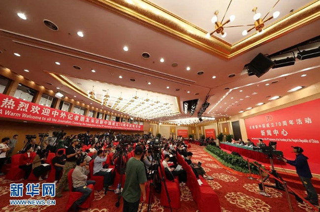 24日下午,慶祝中華人民共和國成立70周年活動新聞中心在梅地亞中心二層新聞發布廳舉辦第一場專題集體采訪活動,介紹有關閱兵活動安排,并回答記者提問。