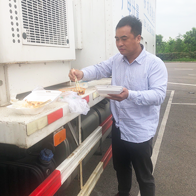 疫情期間服務區(qū)餐廳關閉,謝智衛(wèi)就在停車處食用快餐