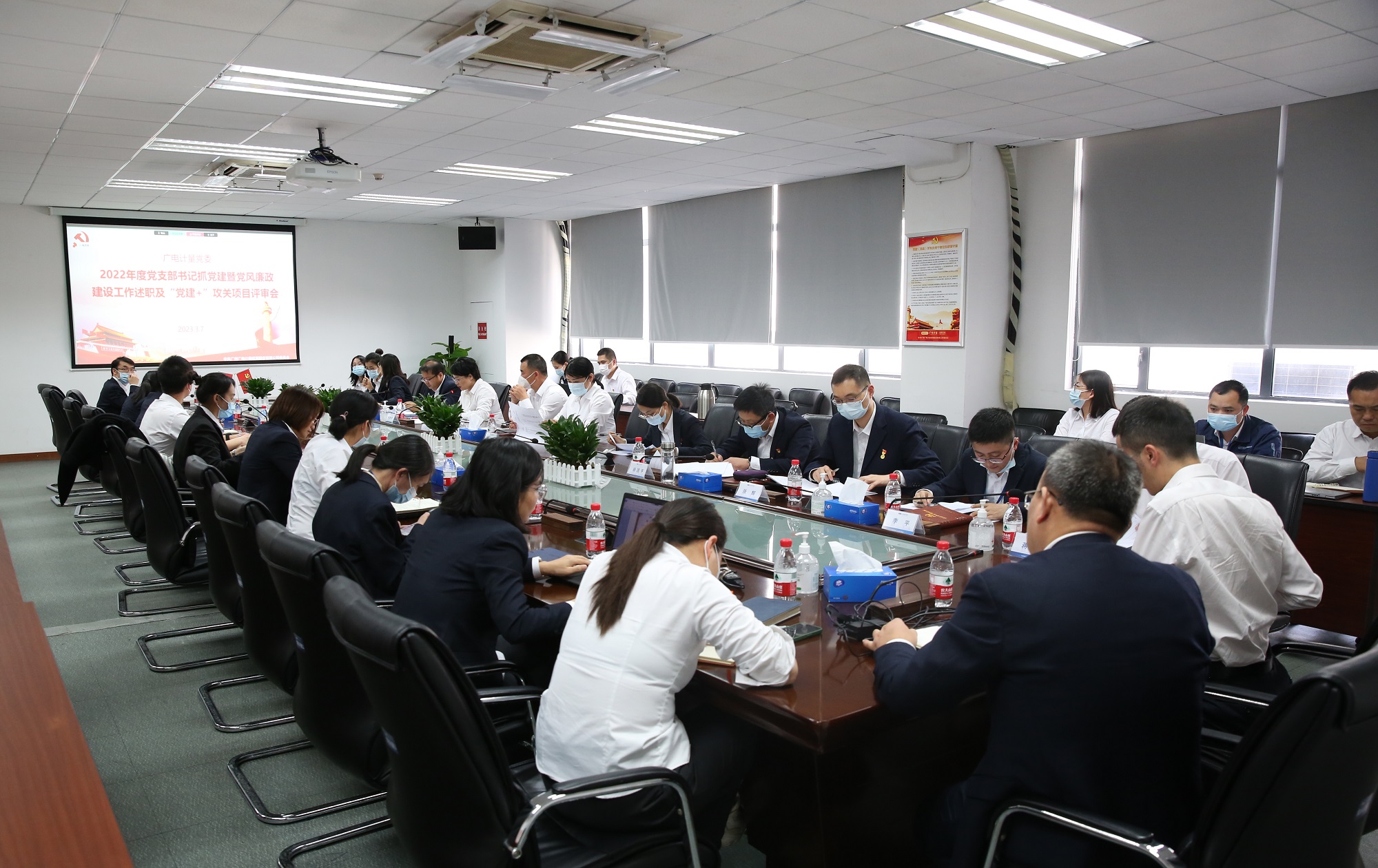 為強(qiáng)化基層黨組織書記抓基層黨建工作的年度考評與經(jīng)驗(yàn)交流,推動全面從嚴(yán)治黨向縱深發(fā)展、向基層延伸,同時,力促黨建與生產(chǎn)經(jīng)營深度融合,充分發(fā)揮基層組織戰(zhàn)斗堡壘作用和黨員先鋒模范作用,實(shí)現(xiàn)基層黨組織建設(shè)全面進(jìn)步、全面過硬,以高質(zhì)量黨建引領(lǐng)公司高質(zhì)量發(fā)展,廣電計(jì)量黨委于3月7日召開2022年度黨支部書記抓基層黨建暨黨風(fēng)廉政建設(shè)工作述職及“黨建+”攻關(guān)項(xiàng)目評審會,31個支部匯報(bào)了2022年抓基層黨建暨黨風(fēng)廉政建設(shè)工作及“黨建+”攻關(guān)項(xiàng)目的開展情況及項(xiàng)目成效。廣電計(jì)量黨委副書記白云出席會議并講話,會議由黨委委員、黨群辦公室主任鐘桂芳主持。