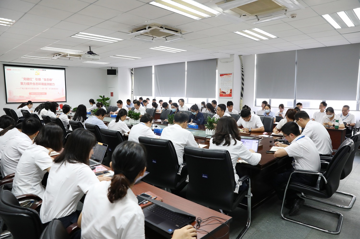 為深入學習貫徹黨的二十大精神,進一步提升生態環境領域計量保障能力,同時,不斷加強新時代廉潔文化建設,引導全體黨員筑牢拒腐防變的思想道德防線,持續營造積極健康、干事創業的政治生態和良好環境,9月12日,廣電計量黨委組織開展“‘黨建紅’引領‘生態綠’,聚力提升環境監測能力”主題黨日暨“一季一警”學習教育。廣電計量31個黨支部黨員和入黨積極分子共500余人,分別在廣州總部多個會場以及子公司分會場,通過現場、視頻的方式參加此次學習教育。